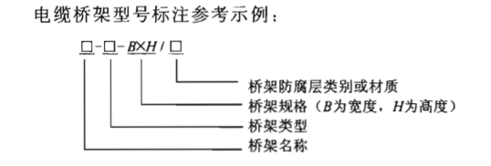 例如:KJQG-P1-600X150/(Q表示产品名称为KJQG的无孔托盘.宽度600、高度150采用彩色涂层钢板制作。